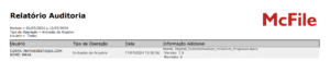 • Informações Adicionais: Detalhes específicos, como dados do arquivo criado, nome do usuário alterado, pesquisa realizada, etc.